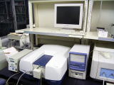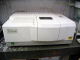 190〜900nmの波長範囲で溶液の光吸収スペクトルを測定するための装置です。積分球と呼ばれるアタッチメントをつけることにより、固体粉末の拡散反射スペクトルを測定することができます。